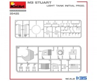 Das Standmodell ist eine Nachempfindung eines M3 Stuart Panzers aus der ersten Produktionsreihe im Maßstab 1:35. Die Photoätzteile, sowie die offen und geschlossen darstellbaren Luken bieten neben den beweglichen Kettengliedern die Möglichkeit zur idealen Darstellung in einem Diorama mit entsprechender Szenerie. Aufgrund der detaillierten Schweißnähte und der beigefügten Decals kann der Panzer in 4 verschiedenen Varianten beklebt werden und rundet somit jedes Diorama detailreich ab.