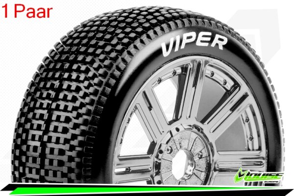 Louise RC - B-VIPER-JA - 1-8 Buggy --Inhalt: 2 Reifen-- Fertig Verklebt - Soft - Speichenfelgen Schwarz-Chrom - Hex 17mm - L-T3194SBC