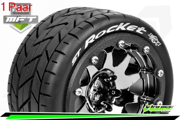 Louise RC - MFT - ST-ROCKET - 1-10 Monster Truck --Inhalt: 2 Reifen-- Montiert - Sport - Bead-Lock 2.8 Felgen Schwarz-Chrom - 1/2-Offset - Hex 12mm - L-T3311SBCH