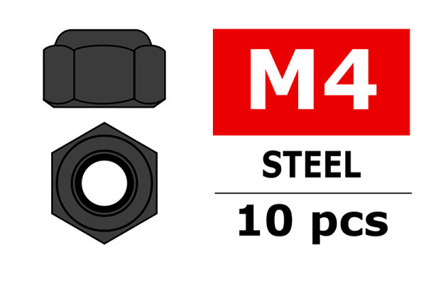 Team Corally - Stahl Nylstop Muttern M4 - Schwarz passiviert - 10 St
