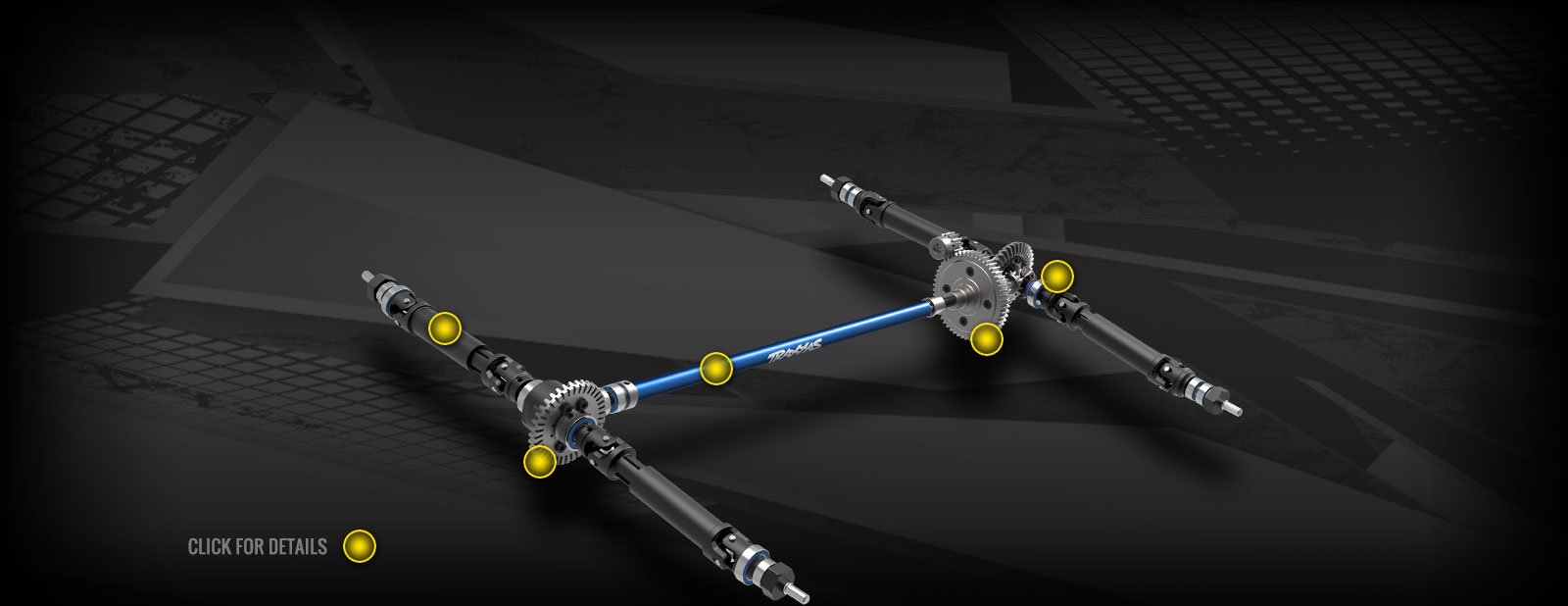 - Ölgefüllte Stahlzahnräder für die vorderen und hinteren Differentiale