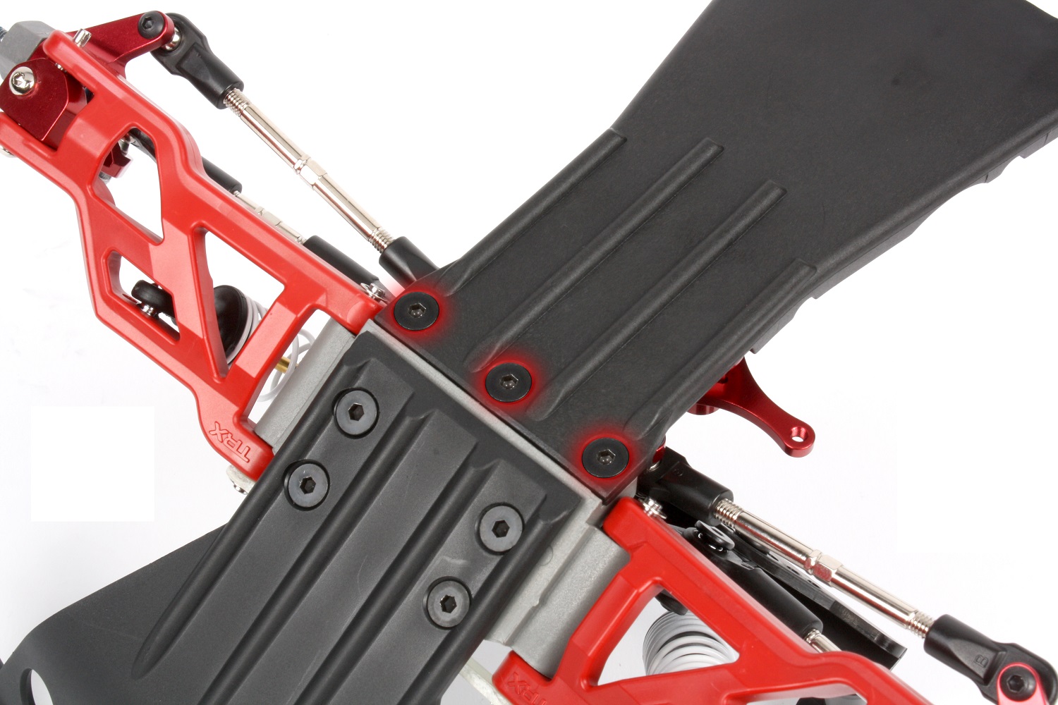 Entfernen Sie die 3x8-mm-Schrauben, mit denen die Nerfbars am Originalchassis befestigt sind, und verwenden Sie sie, um die mitgelieferten Nerfbars des LCG-Chassis zu installieren.