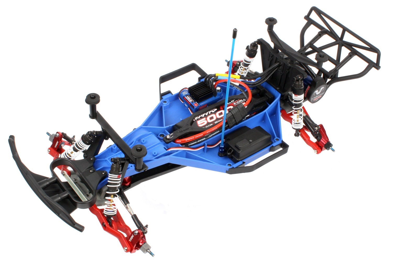 Das Niedrige Chassis wird als kompletter Bausatz mit einem blauen Hauptchassis verkauft, aber die Komponenten werden auch separat in drei Farben angeboten. Das Hauptchassis, das untere Chassis und die Nerf Bars werden jeweils in blau, grau und schwarz angeboten (siehe Artikelnummern unten). Wir haben einen weiteren Slash in grau aufgebaut, um einen anderen Look zu zeigen.